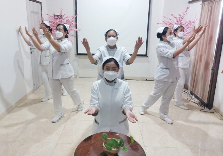 Peringatan Hari Perawat Internasional ini diakhiri dengan penampilan bahasa isyarat tangan. Para perawat menampilkan isyarat tangan bertemakan “Rang Ai Chuan Chu Qu” yang artinya “Sebarluaskan Cinta Kasih”. Isyarat tangan ini mewakili pesan kepada para perawat agar menjadi misionaris penyebar cinta kasih untuk mengurangi derita yang dialami pasien dengan melayani sepenuh hati.