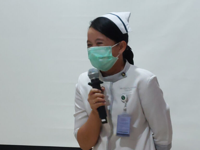 “Sebagai perawat kita harus berbenah diri dan harus mendengarkan masukan dari luar. Selain itu, sebagai perawat harus mencintai pekerjaan kita dan mengganggap pasien sebagai keluarga kita sendiri,” ujar Ns. Retno Susanti, M.Kep., Manajer Keperawatan.