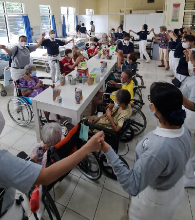 Kebahagiaan antara relawan dan oma opa penghuni Wisma Sahabat baru.