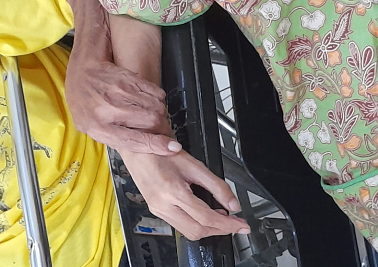 Genggaman erat kedua insan Opa Mustofa dan Oma Siti yang merasa senasib sepenanggungan.