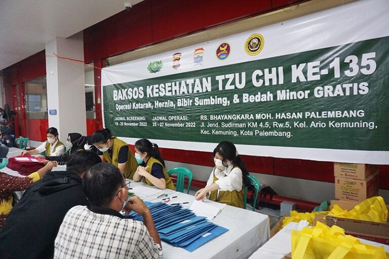 Sebanyak 207 pasien katarak menjalani operasi di Bakti Sosial Kesehatan Tzu Chi ke-135 di Kota Palembang, Sumatera Selatan. Sementara pasien pterygium ada 20, pasien hernia 41, pasien bibir sumbing 7. Sebanyak 41 pasien juga telah menjalani operasi hernia, dan 65 pasien lainnya menjalani operasi terkait benjolan.