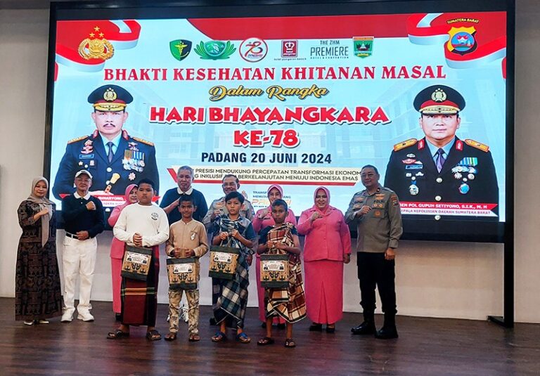 Menyambut HUT Bhayangkara ke-78, Polda Sumbar bekerja sama dengan Yayasan Buddha Tzu Chi Padang mengadakan bakti sosial kesehatan khitanan massal yang diadakan di Gedung Bagindo Aziz Chan Youth Center, hari Kamis, 20 Juni 2024. Pelaksana khitan massal ini adalah dari Biddokkes Polda Sumbar dan Rumah Sakit Bhayangkara Padang. Sementara Tzu Chi Padang menyiapkan 500 paket suvenir berupa peci dan sarung, serta obat.