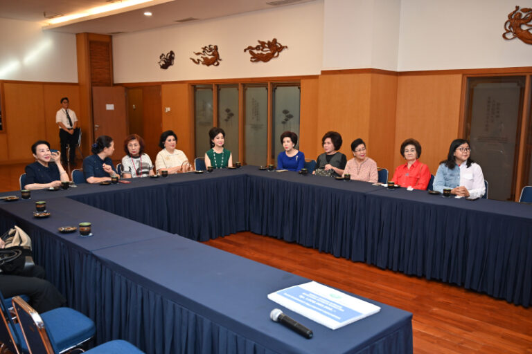 Para anggota BFI dijamu oleh Ketua Yayasan Buddha Tzu Chi Indonesia Liu Su Mei dan Rebecca Halim dengan teh hangat dan panganan ringan sambil menyaksikan tayangan video kilas balik 30 tahun Tzu Chi Indonesia.