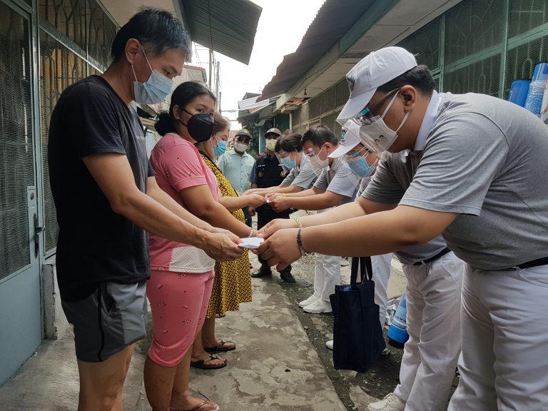 Pembagian bantuan dilakukan sekitar pukul 14.00 WIB oleh 4 relawan: Ang Tjiu Ngo, Nyo Swan Sim, Ardi, dan Vinson Theodoric. Hal tersebut dimaksudkan untuk mencegah kerumunan.