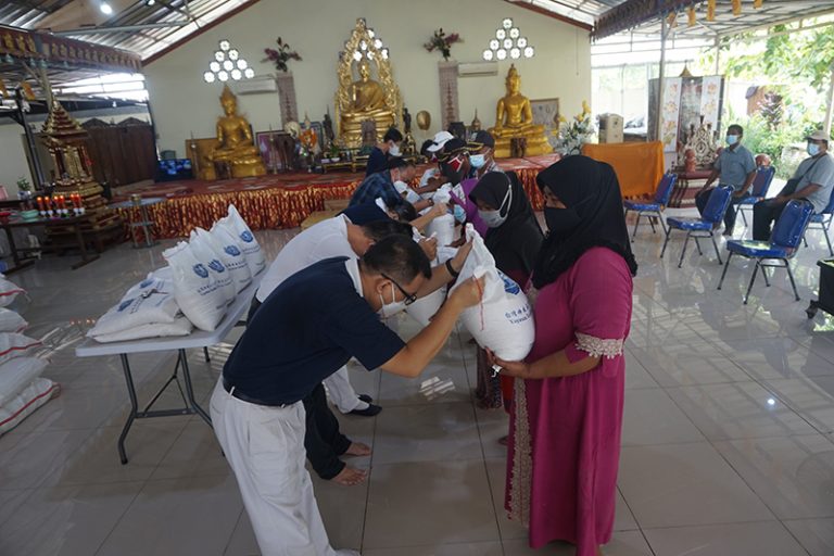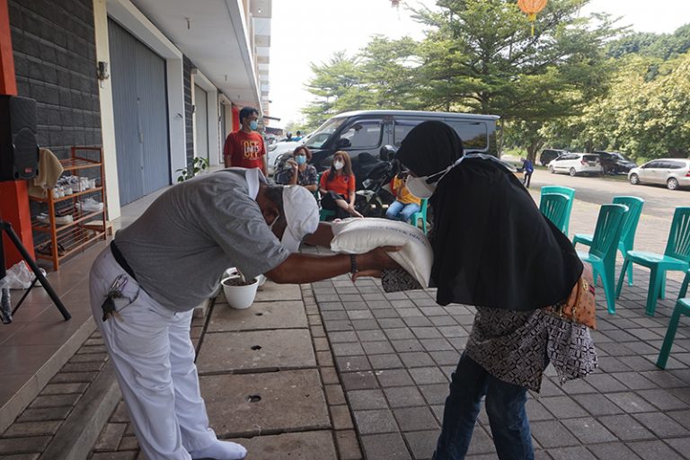 Hari itu, selain membagikan 300 paket beras berukuran 10 kg kepada warga melalui Cetiya Theravada Dhamma Viriya, di jalan Taman Heliconia No. 26, Pusaka Rakyat, ada juga bantuan sembako.