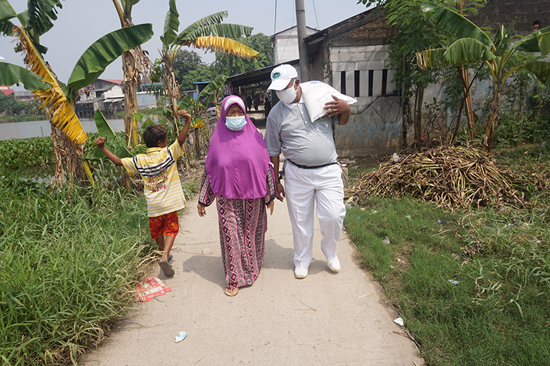 Hari itu, “Alhamdullilah, senang sekali dapat beras 10 kg. Duapuluh hari ke depan tidak perlu beli beras,” kata Siti kepada salah satu relawan yang membantu memanggul beras sampai ke gubuknya.