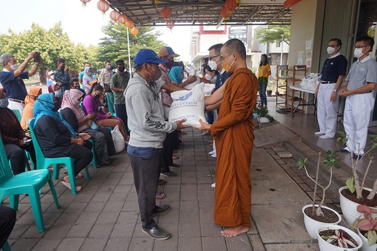 “Hari ini pula, kami juga ada bakti sosial. Yayasan Buddha Tzu Chi memberikan bantuan berupa beras 10 kg melalui cetiya. Kami membuat dua gelombang. Gelombang pertama, pure dari Tzu Chi dan kami yang menyalurkan. Gelombang kedua, cetiya ini yang memberikan akomodasi (bantuan) sembako. Dua momen ini dijadikan dalam satu kesatuan, kami bagikan ke warga sekitar yang sangat membutuhkan dan lainnya kami bagikan kepada pejalan kaki,” jelas Bhikkhu Cittajayo agar bantuan tepat sasaran, tepat guna dan tepat manfaat.