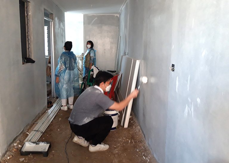 Minggu, 6 Maret 2022, 50 orang relawan komunitas He Qi Utara 2, Hu Ai Pluit 1 dan 2 bergotong royong untuk mengecat rumah warga Kamal Muara yang sedang dalam proses pembangunan. Bambang, relawan Komite Tzu Chi yang menjadi ketua kelompok pengecatan rumah mengatakan dilibatkannya relawan dalam proses pembangunan agar para relawan melihat langsung program amal kemanusiaan Tzu Chi. Ia juga mengajak relawan baru (rompi) untuk mengenal kegiatan Tzu Chi secara langsung untuk membangkitkan semangat kemanusiaan dan berharap mereka bisa bergabung dalam barisan Tzu Chi.
