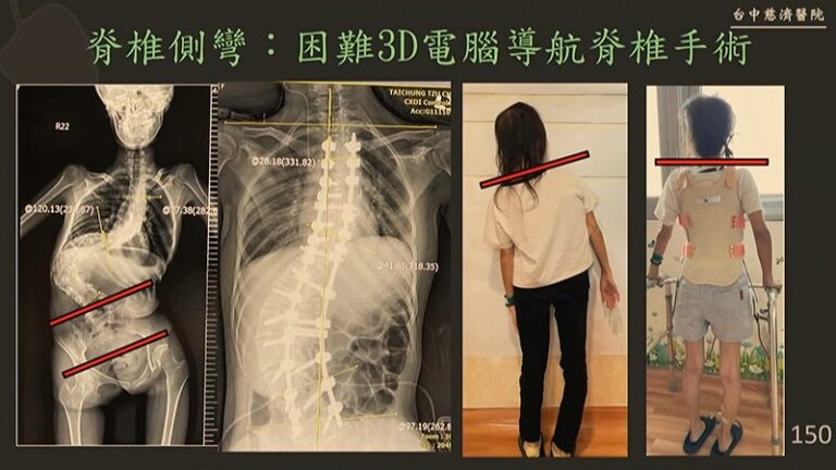 “Pasien ini memiliki tulang belakang yang melengkung 121 derajat. Kita bisa melihat bahwa tulang belakangnya menekan paru-parunya. Tulang belakangnya melengkung hingga bersentuhan dengan tulang rusuknya. Saat berjalan, pasien ini akan terengah-engah. Karena itu, sebelum menjalani operasi, dia terlebih dahulu melatih ototnya selama setengah tahun. Yang terpenting, kami sangat beruntung dapat bekerja sama dengan dokter dari departemen pulmonologi kita untuk melatih pasien ini,” kata Zhang Jian-jun Kepala pusat bedah minimal invasif tulang belakang dan sendi.