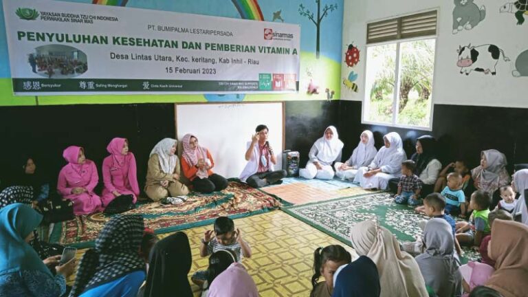 Para bidan Pustu terlihat mempersiapkan vitamin A serta perlengkapan imunisasi. Relawan pun langsung berbaur membantu para bidan. Kegiatan pertama yang dilakukan adalah memberikan penyuluhan kepada peserta posyandu khususnya ibu–ibu yang mendampingi anaknya dan ibu hamil. Penyuluhan diberikan oleh dokter Jupanri F Siregar selaku dokter perusahaan sekaligus relawan dari Tzu Chi Xie Li Indragiri. Dokter menyampaikan pentingnya pemberian imunisasi dan pemberian vitamin A bagi balita. Selain itu juga disampaikan edukasi kepada para ibu hamil agar selama proses kehamilan memperhatikan asupan gizi yang baik bagi janin. Sehingga bisa mencegah risiko anak menderita stunting yang mempengaruhi pertumbuhan dan perkembangan otak.