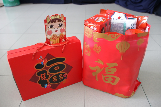 Selama empat hari pembagian bingkisan imlek, sebanyak 11 relawan yang berpartisipasi pada kegiatan ini menyambut kedatangan para penerima bantuan pada pukul 09.30 WIB hingga 15.00 WIB. Sebanyak 42 paket bingkisan Imlek yang dibagikan kepada para penerima bantuan berisi makanan, minuman ringan, dan pernak pernik imlek untuk memeriahkan suasana Imlek.