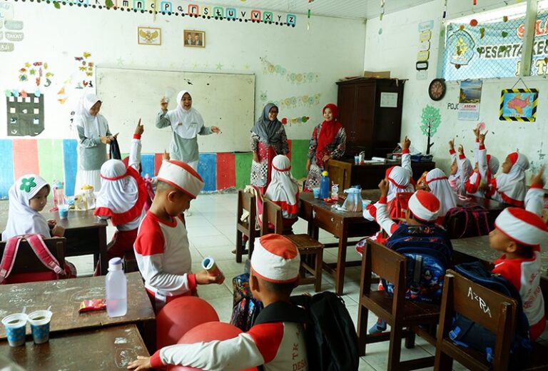 Selain di halaman sekolah, penyuluhan juga dilakukan relawan di dalam kelas.