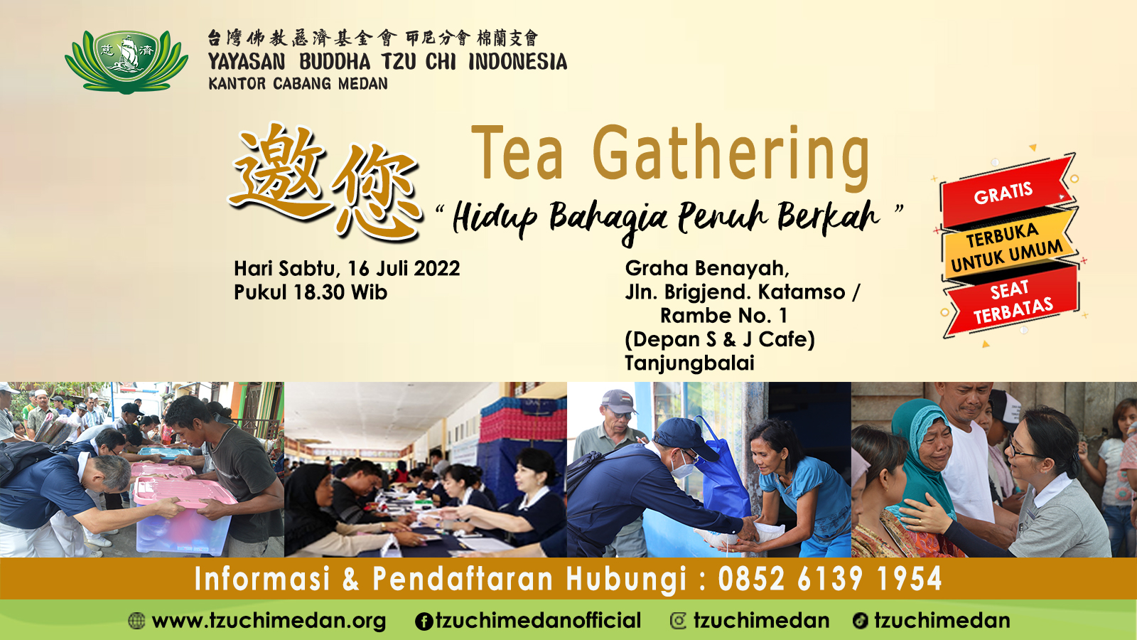 Tea Gathering "Hidup Bahagia Penuh Berkah" Datang dan hadirilah acara/kegiatan Tea Gathering "Hidup Bahagia Penuh Berkah" Lokasi : Graha Benayah Jln. Brigjend. Katamso / Rambe No. 1 (Depan S & […]