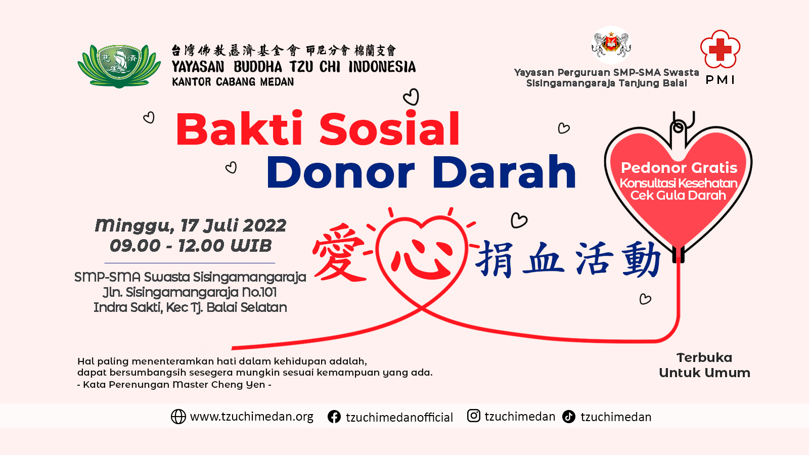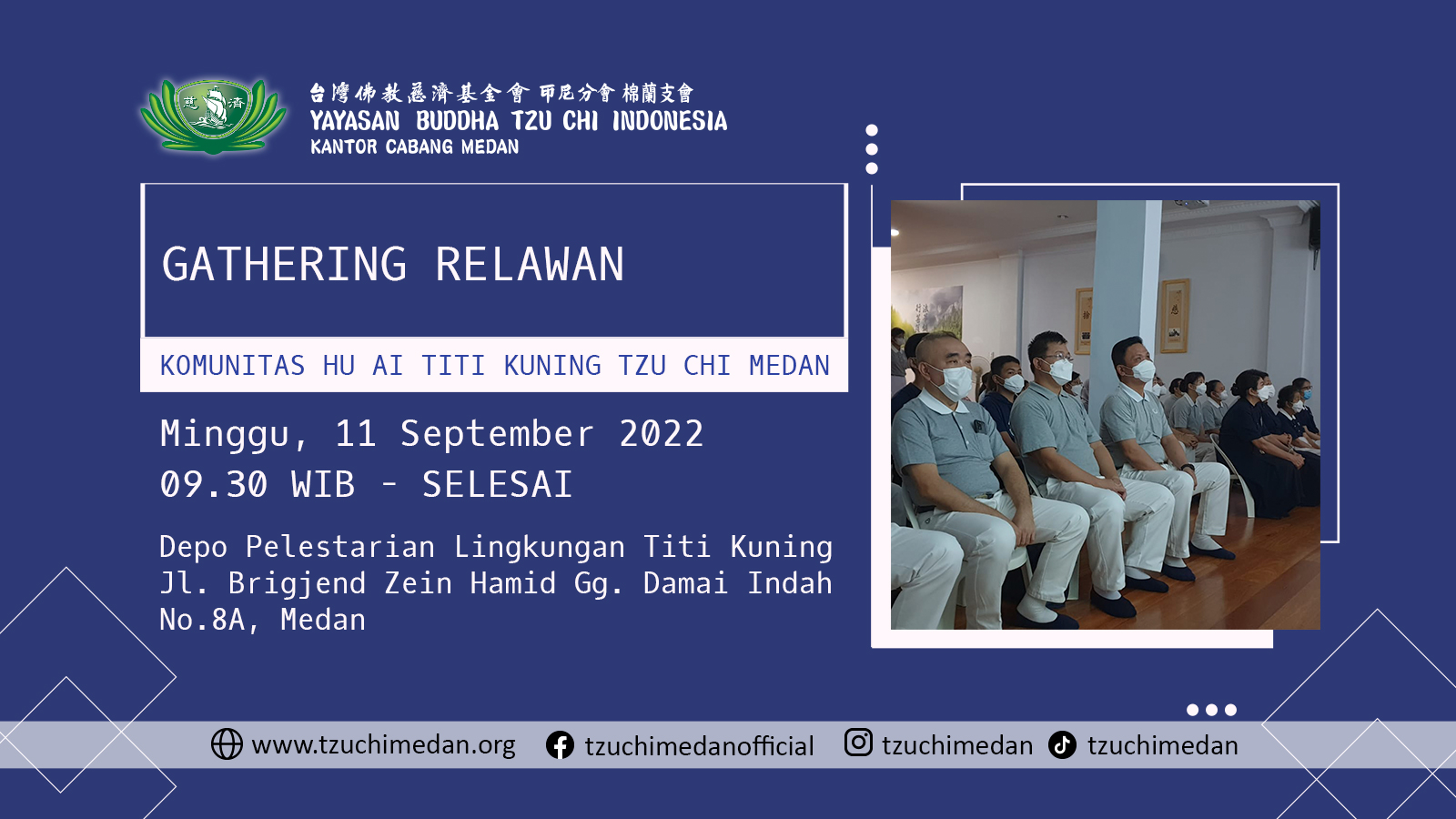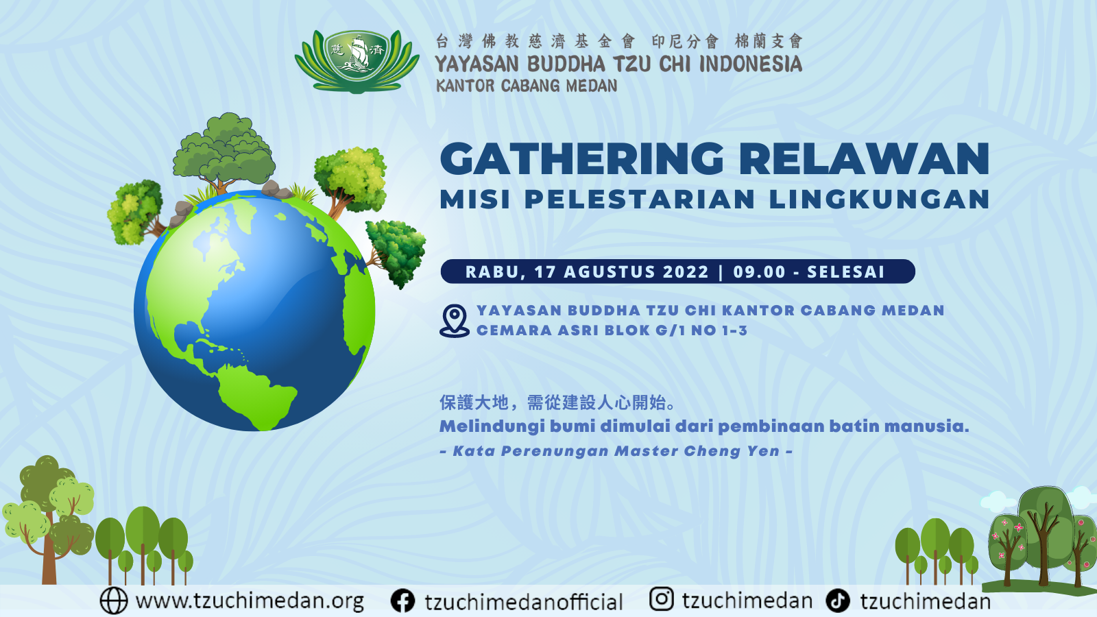 Gathering Relawan Misi Pelestarian Lingkungan Datang dan hadirilah acara/kegiatan Gathering Relawan Misi Pelestarian Lingkungan. Lokasi : Yayasan Buddha Tzu Chi Kantor Cabang Medan Cemara Asri Blok G/1 No 1-3 Tanggal […]