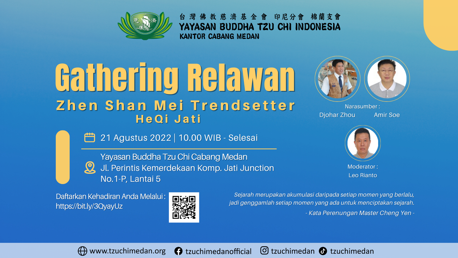 Gathering Relawan Zhen Shan Mei Trendsetter Komunitas HeQI Jati Datang dan hadirilah acara/kegiatan Gathering Relawan Zhen Shan Mei Trendsetter Komunitas HeQi Jati. Lokasi : Yayasan Buddha Tzu Chi Cabang Medan […]