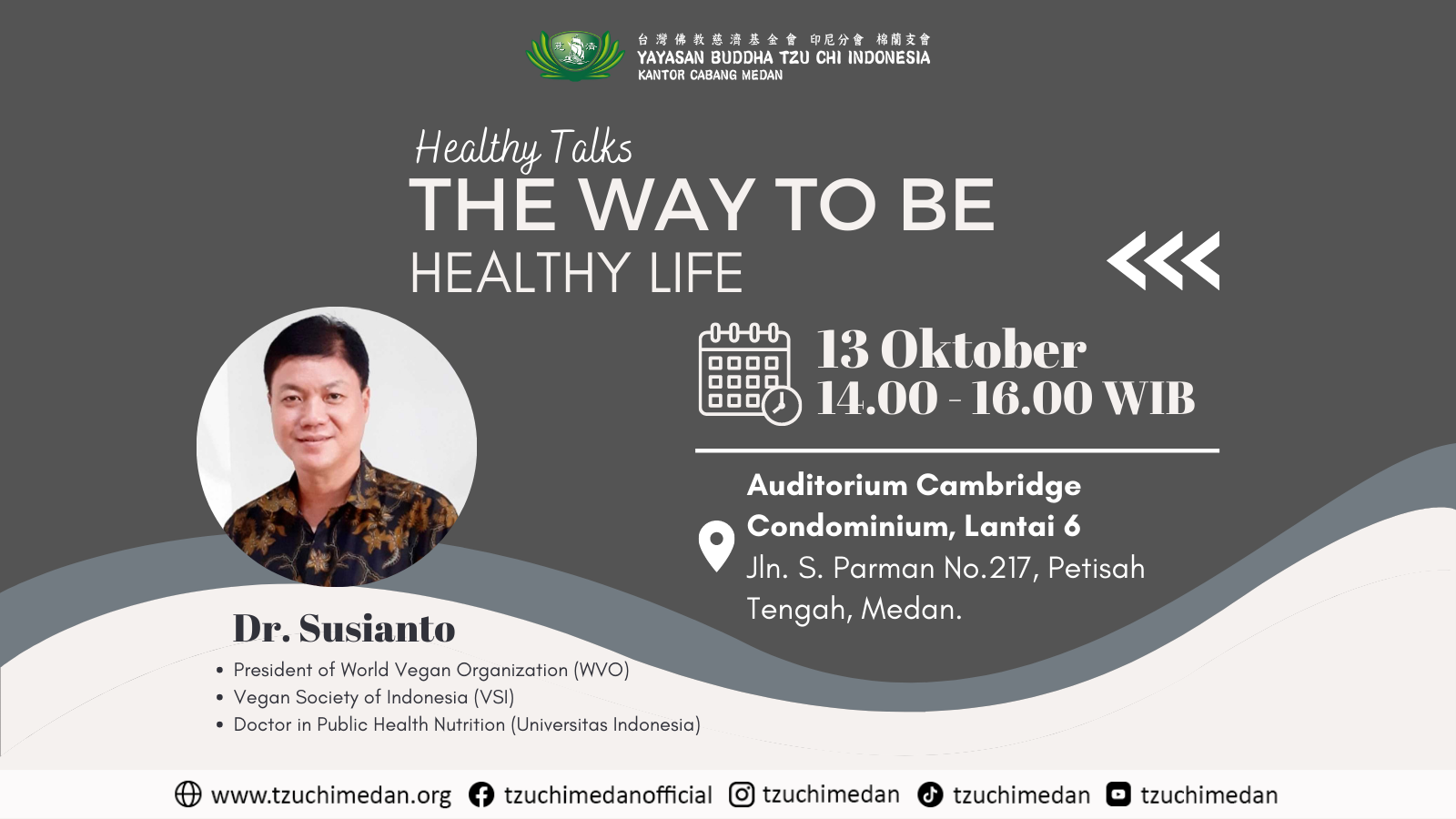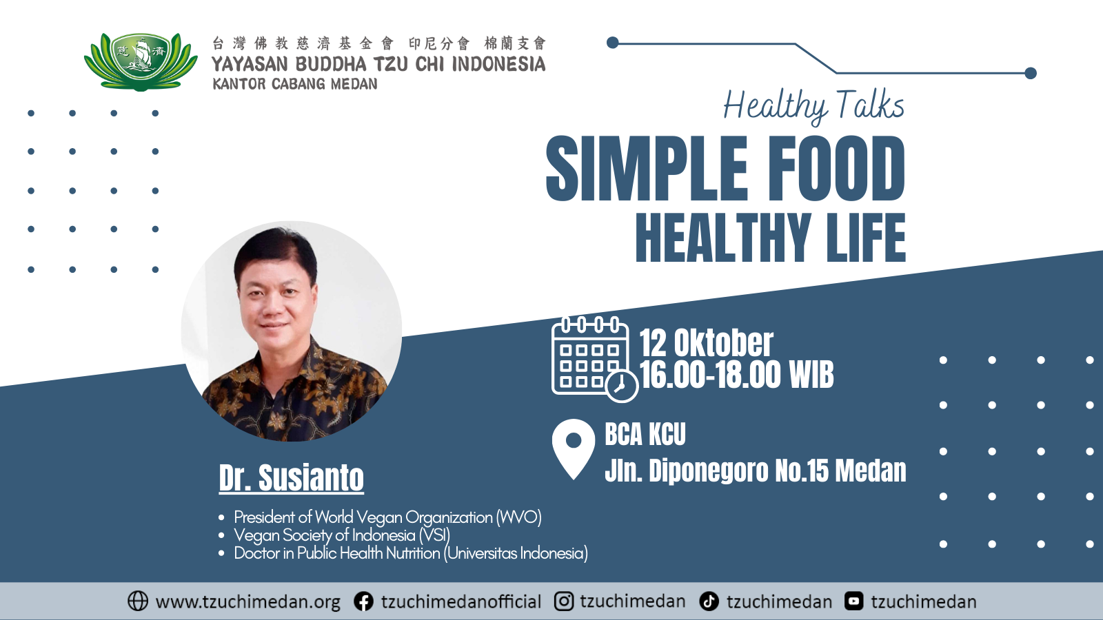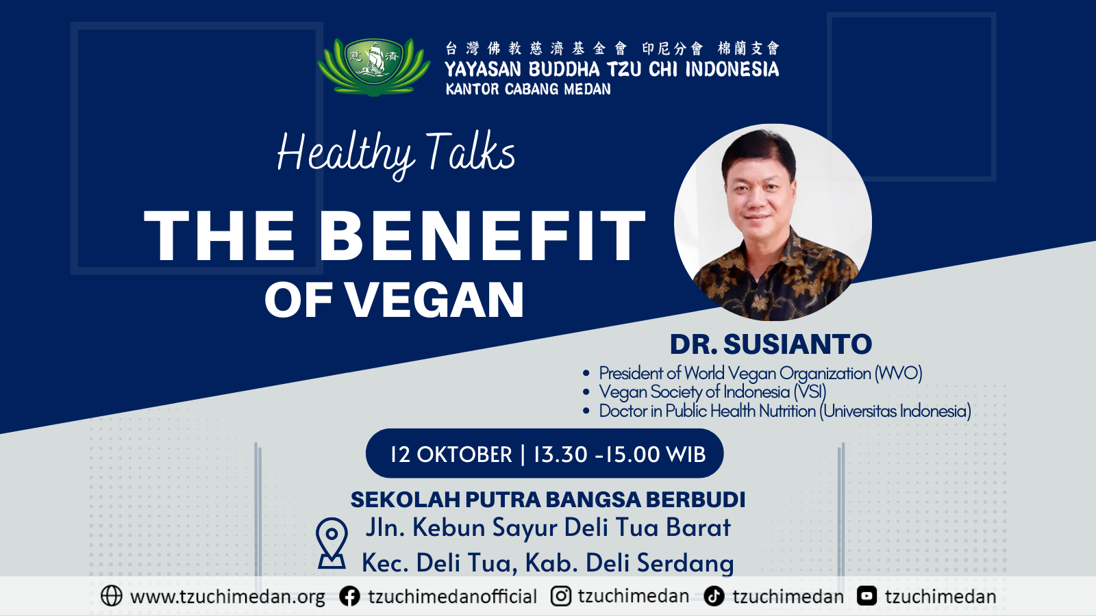 Healthy Talks : Simple Food Healthy Life Datang dan hadirilah acara/kegiatan Simple Food Healthy Life. Healthy Talks by Dr. Susianto President World of Vegan Organization(WVO) Vegan Society of Indonesia(VSI) Doctor […]