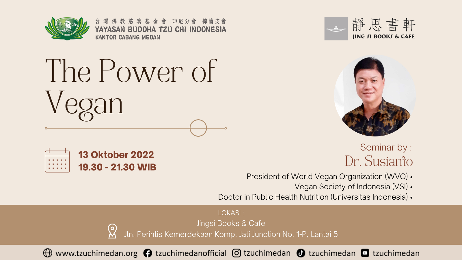 The Power of Vegan Datang dan hadirilah acara/kegiatan The Power of Vegan. Seminar by Dr. Susianto President World of Vegan Organization(WVO) Vegan Society of Indonesia(VSI) Doctor in Public Health Nutrition […]
