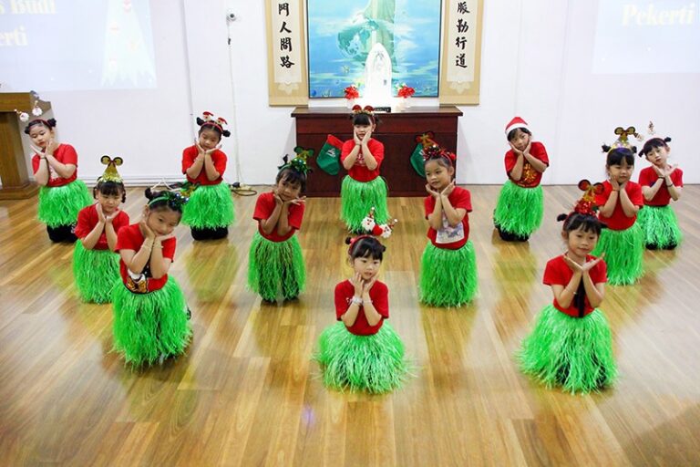 Memeriahkan acara, para siswi kelas budi pekerti menampilkan tarian dengan tema Merry Christmas. Para penerima bantuan Tzu Chi atau gan en hu juga diajak bernyanyi lagu-lagu yang ceria.