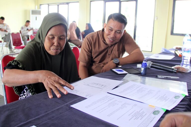 Didampingi oleh Ketua RW 001 Kamal Muara, Misah membubuhkan cap jempol di surat keputusan. Ia sangat bersyukur karena rumahnya bisa dibangun kembali, lengkap dengan WC yang saat ini tak punyai.