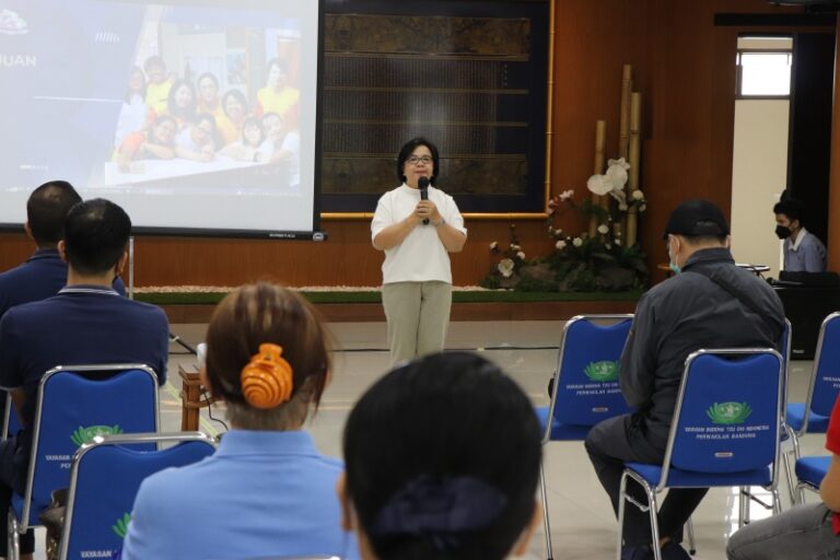 orang tua ditempatkan dilantai dua Aula Jing Si untuk mengikuti kelas Parenting yang dibawakan oleh Melly Kiong praktisi Mindful Parenting Emka.