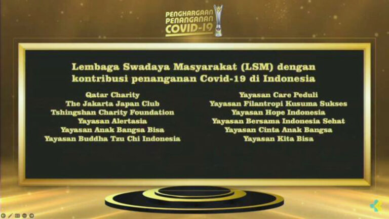 Kategori kedua, yakni Lembaga Swadaya Masyarakat (LSM) dengan Kontribusi Penanganan Covid-19 di Indonesia dengan penghargaan diberikan kepada Yayasan Buddha Tzu Chi Indonesia.