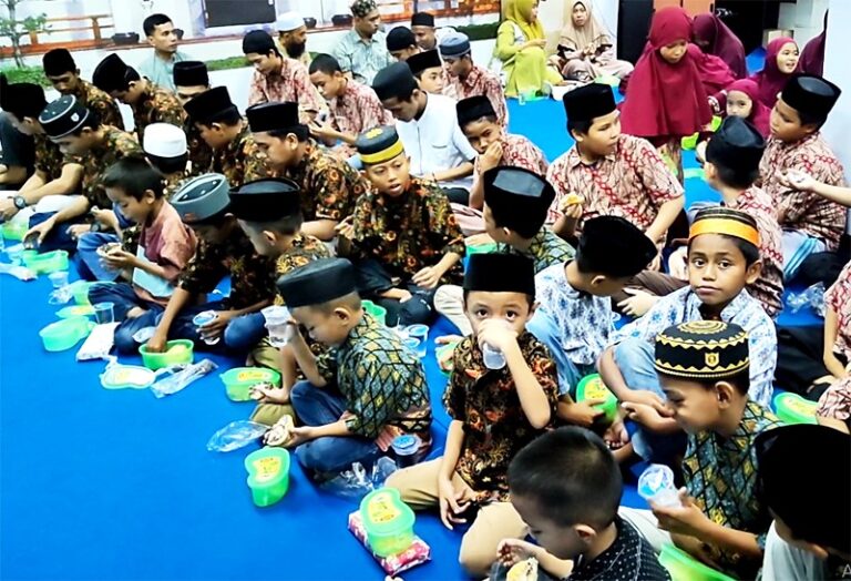Relawan Tzu Chi dan anak-anak berbuka puasa bersama.
