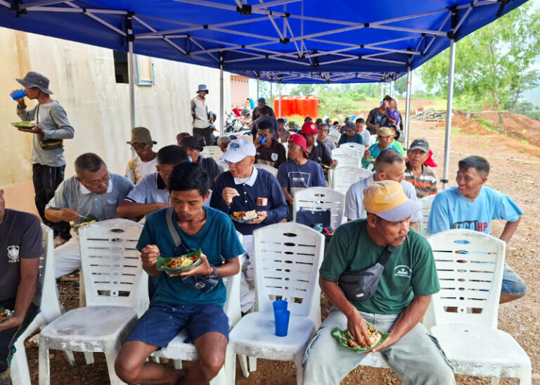 Relawan Tzu Chi Padang mengadakan kegiatan makan bersama para seniman bangunan yang bertugas dalam pembangunan Hunian Tetap (Huntap) di kawasan Bumi Perkemahan Air Dingin pada hari Selasa, 21 April 2026.