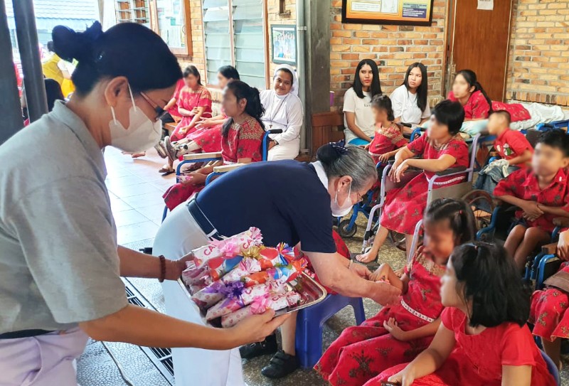 “Yang terindah di langit adalah bintang-bintang, yang terindah di Bumi adalah cinta kasih”.Kata Perenungan Master Cheng Yen Lo Chun Moy (seragam biru) membagikan kado cinta kasih untuk anak disabilitas di