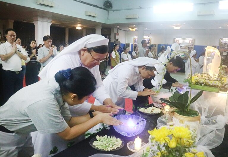 Doa Bersama Waisak ini berlangsung khidmat. Pemandian Buddha Rupang dimulai dengan penghormatan tiga kali kepada Budha. Kemudian para relawan berbaris rapi membawa persembahan pelita, air wangi dan bunga menuju altar Buddha. Pelita mempunyai makna menerangi sepuluh penjuru dunia, air wangi membersihkan noda bathin manusia dan wangi bunga memberikan makna menerima keharuman Dharma.