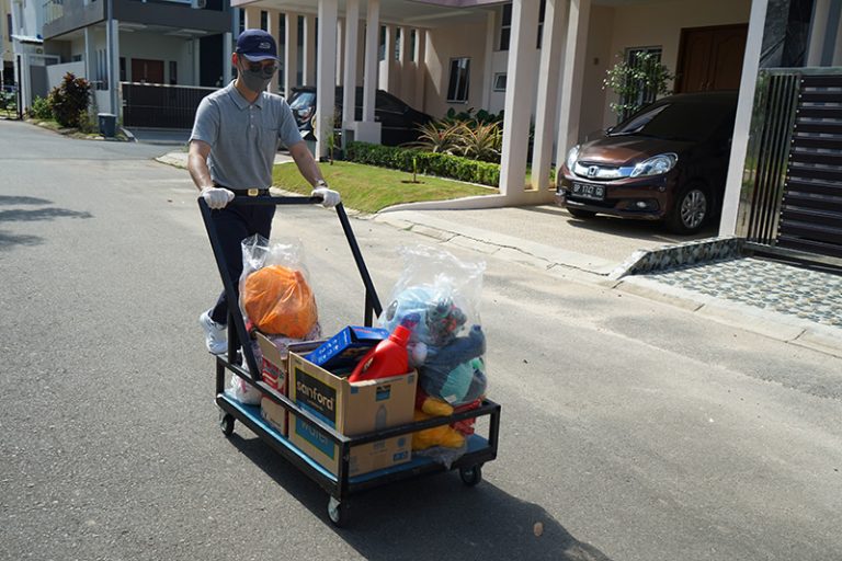Beberapa warga telah mempersiapkan barang daur ulang mereka untuk diserahkan kepada relawan. Di setiap rumah yang dikunjungi, relawan juga menawarkan kantong goni bagi warga untuk mengumpulkan bahan daur ulang. Melihat relawan menenteng berkantong-kantong bahan daur ulang, Ketua RT pun tergerak meminjamkan troli kepada relawan.