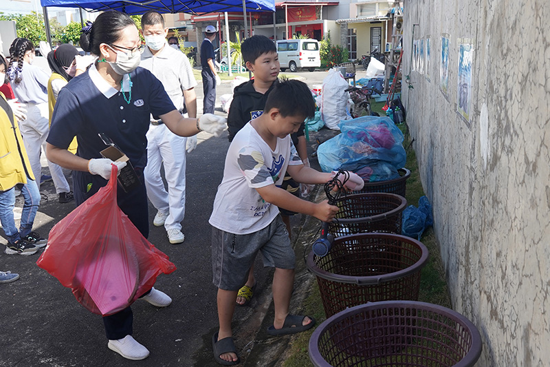 Di antara para peserta yang mengikuti kegiatan pemilahan, terlihat banyak anak kecil tengah serius melakukan pemilahan. Setelah relawan menjelaskan bagaimana cara memilah barang daur ulang, para murid di usia kelas dasar tesebut gencar mengambil barang daur ulang yang dibawa langsung oleh warga dan memilahnya.