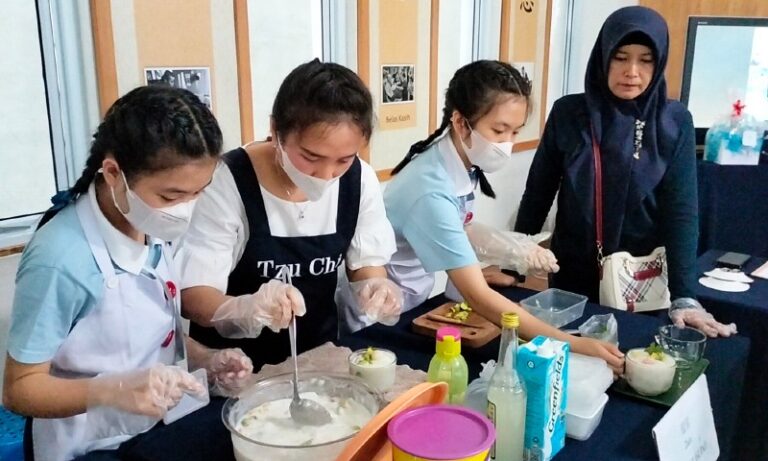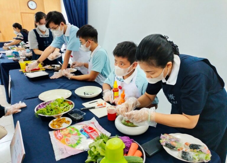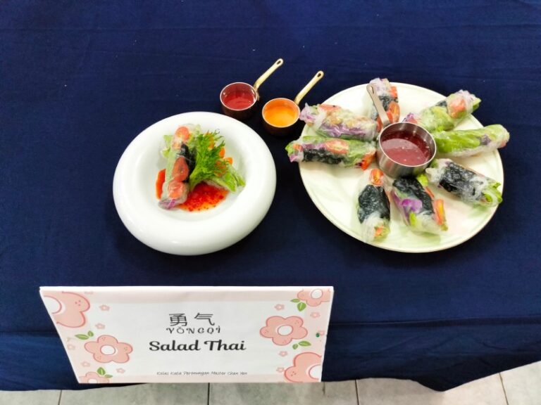 Hal yang sama dirasakan Ju Fang, ibu dari Edric (Teen Class) yang juga relawan Tzu Chi sejak akhir tahun 2008. Menu andalannya adalah Salad Thai yang berupa aneka sayuran hijau segar, wortel, tomat ceri, mentimun ditambah sedikit kismis dan rumput laut dibungkus dalam rice paper dan dibalur saos vegan dan mayonais vegan.