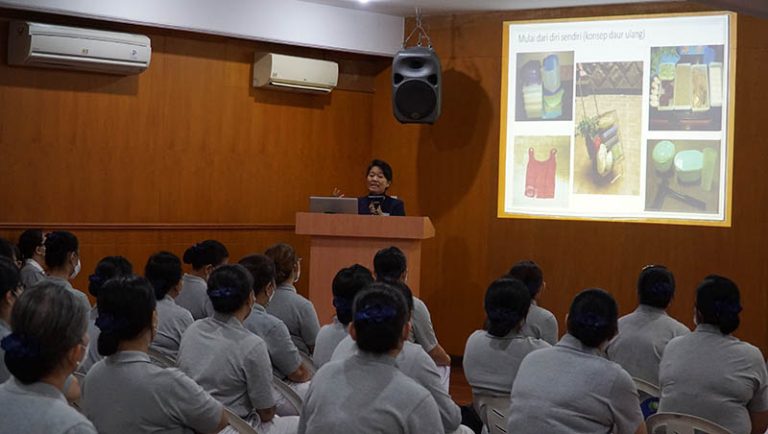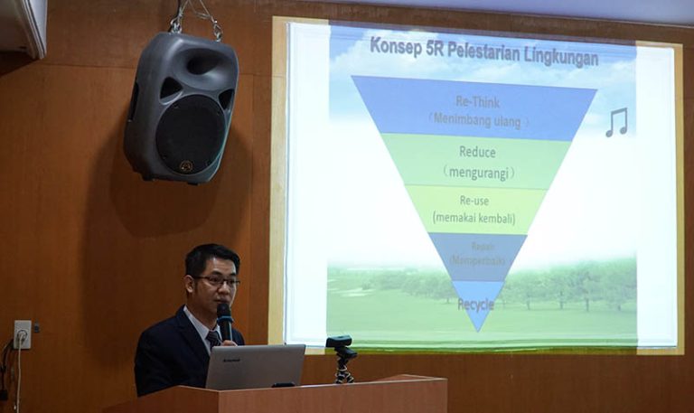Memasuki materi ke tiga, relawan Tony Honkley membawakan materi Misi Pelestarian Lingkungan Tzu Chi. Ia pun memaparkan pentingnya pelestarian dan peduli lingkungan dengan menjelaskan konsep 5R (Rethink, Reduce, Repair, Reuse, Recycle).