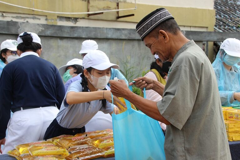 Kegiatan dilanjutkan dengan penandatanganan berita acara dan pembagian sembako secara simbolis. Kemudian, para relawan secara bergilir mengambil kupon warga, membagikan kantong kain, 1 kg gula, 2 bungkus biskuit, 1 kg minyak goreng, dan 5 kg beras kepada masing-masing warga yang membutuhkan.