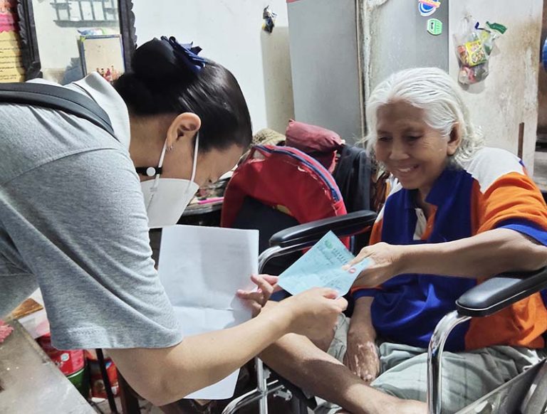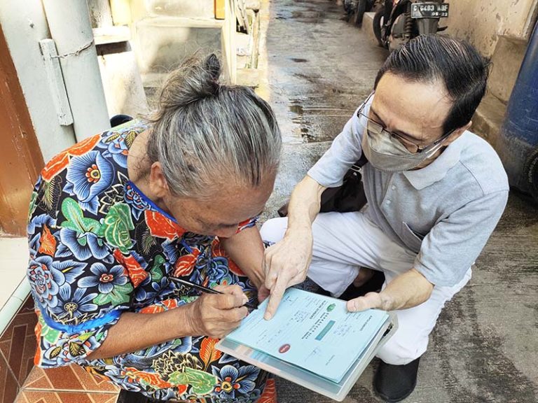Nurmarinah, yang juga seorang warga RT 005 RW 012 pengidap stroke, sangat gembira ketika menerima kupon. “Terima kasih, saya merasa sangat gembira. Besok diwakilkan oleh anak saya untuk ambil paketnya,” tuturnya.