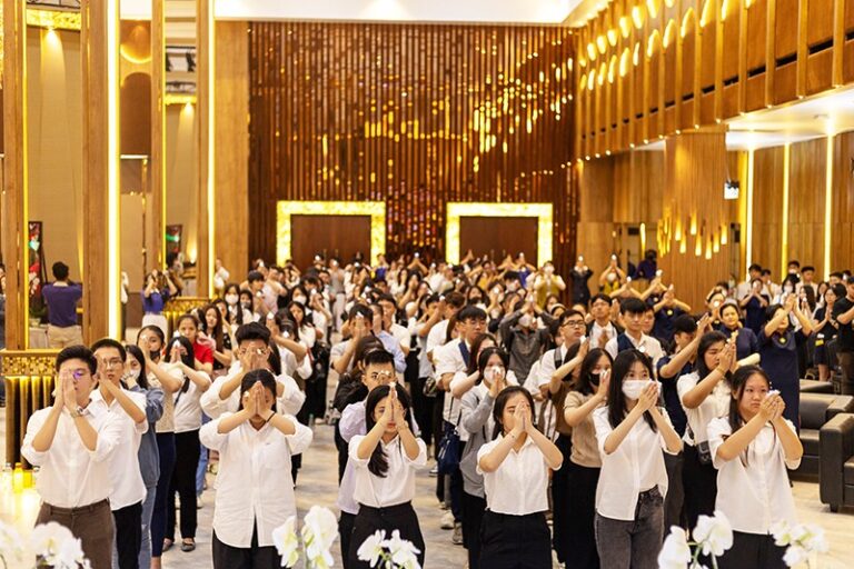 Prosesi Waisak dilakukan dengan mengajak peserta yang kebanyakan adalah mahasiswa UNPRI ini untuk membungkuk, bersujud pada kaki Buddha dan mengambil kuncup bunga. Prosesi tersebut memiliki makna tersendiri, membungkuk bermakna penghormatan terhadap Buddha, bersujud pada kaki Buddha bermakna membersihkan noda batin diri sendiri, dan mengambil kuncup bunga bermakna menerima semerbak harumnya Dharma.