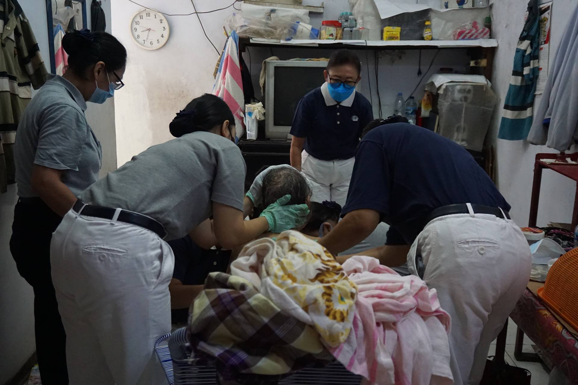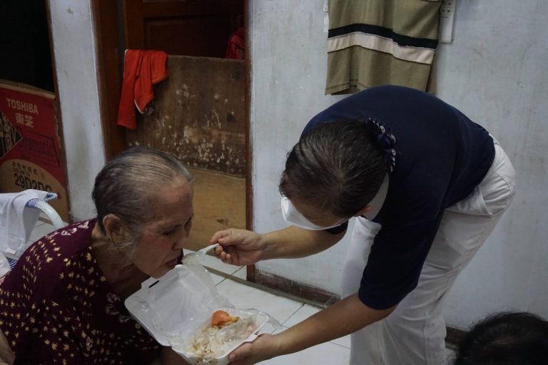 Para relawan begitu cekatan, meski Oma Phan Kin Lan banyak mengeluh, lebih karena butuh perhatian. Ketika sudah bersih semuanya, relawan pun memakaikan baju, menyuapi Oma Phan Kin Lan sarapan, dan membantunya meminum obat.