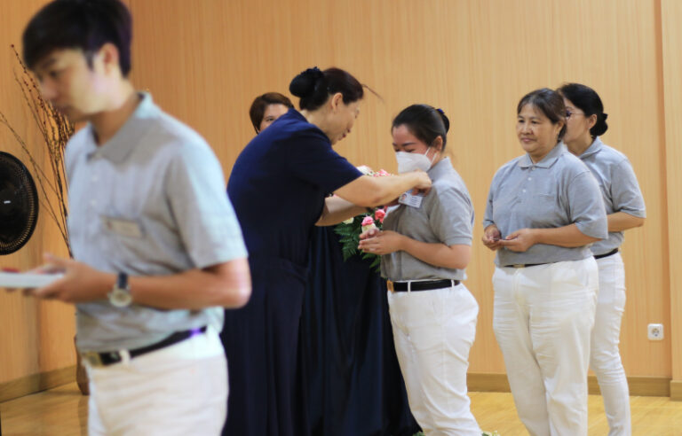 Pik Liang dengan cinta kasih menyiapkan makanan yang sehat untuk para relawan agar dapat kembali merefreshkan diri sebelum ke pemateri selanjutnya.