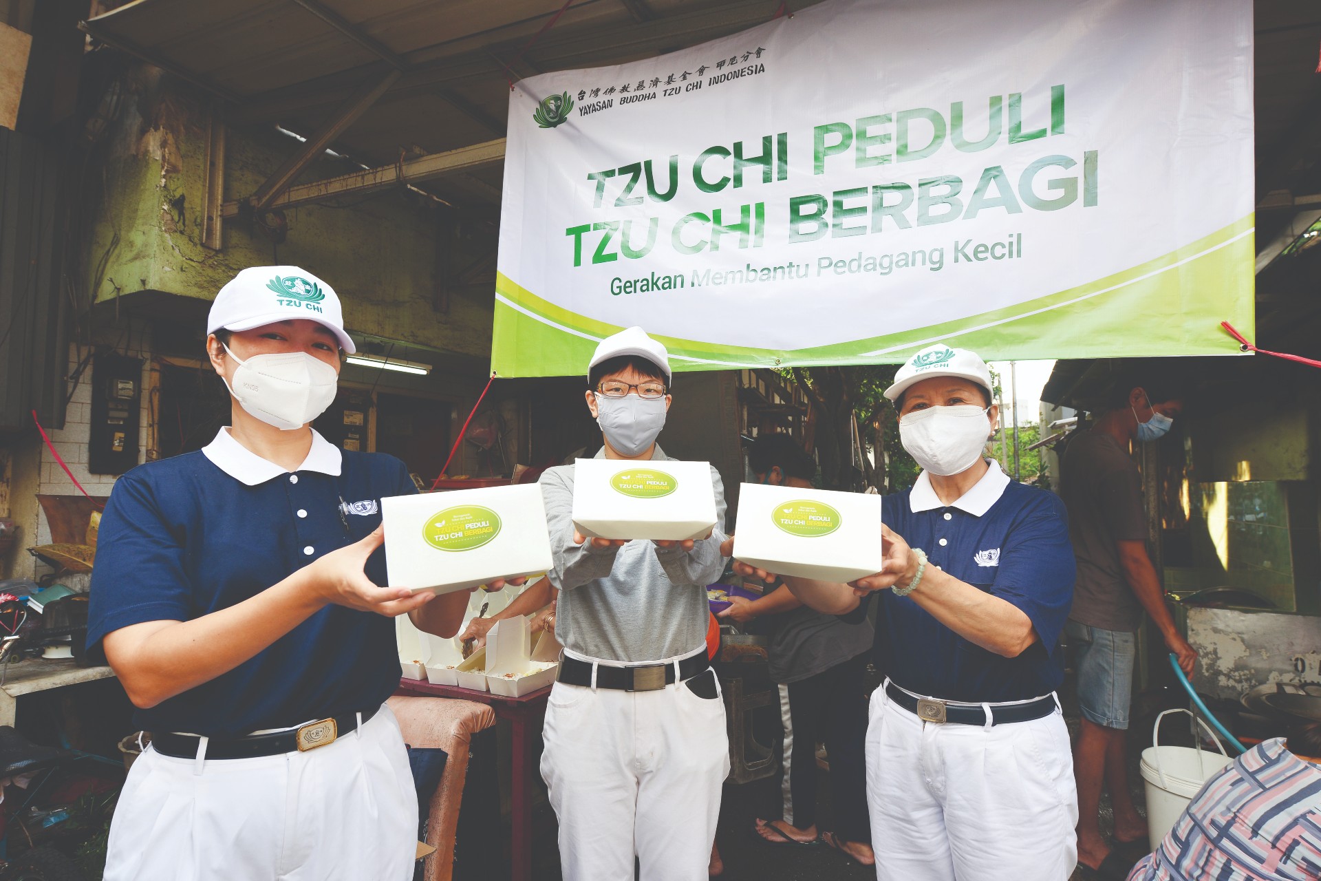 Program Tzu Chi Peduli, Tzu Chi Berbagi (Gerakan Membantu Pedagang Kecil) terus meluas. Sejak Bulan Agustus hingga 11 November 2021, sudah ada 32.876 kotak nasi yang terbagi untuk warga. Jumlah itu didapat dari sekitar 236 warung nasi.