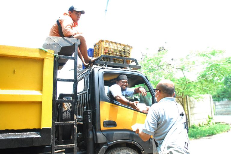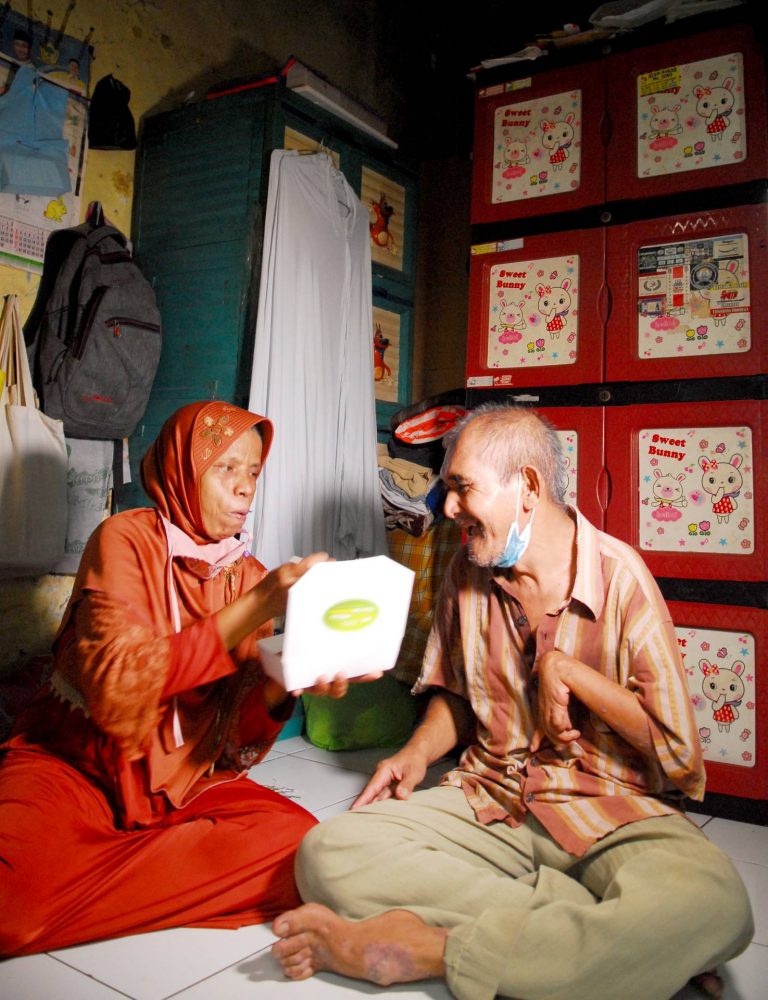 Dari sekian banyak penerima, adalah Rosadi yang kesehariannya berjualan kopi di pinggiran Kali Cisadane, Tangerang. Ia mengaku sangat bersyukur bisa menerima sekotak nasi tiap harinya selama satu minggu di awal bulan September lalu. Sesampainya di rumah, ia tidak memakannya sendiri namun berbagi dengan sang istri, Siti Juriyah. “Cukup ini Neng buat berdua,” katanya sambil melahap nasi yang dilengkapi dengan telur balado, tempe goreng, dan urap sayuran sebagai lauknya.