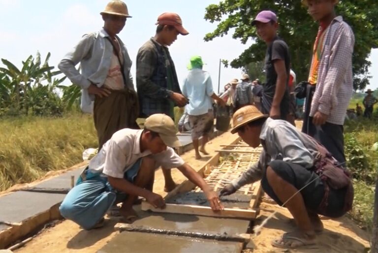 Kita juga dapat melihat jalan setapak yang sebelumnya ditumbuhi rumput liar telah mereka perbaiki menjadi jalan yang lebar. Pertama-tama, mereka membuat batu bata satu per satu dengan semen, kemudian menyusunnya agar menjadi sebuah jalan. Saat seorang relawan ingin menunjukkan ladang itu, dia takut saya berjalan terlalu jauh sehingga menjemput saya dengan kereta lembu.