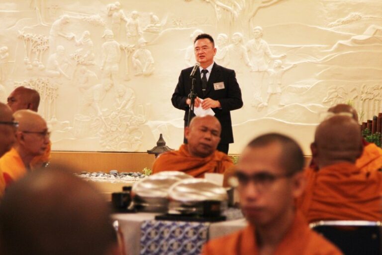 Hong Tjhin, Sekretaris Umum Yayasan Buddha Tzu Chi Indonesia, sangat bersukacita atas kehadiran kembali Keluarga Besar Buddhayana Indonesia yang telah menjadikan Tzu Chi Center sebagai tempat untuk melakukan Sanghadana Khatina Nasional KBI 2024. Kegiatan ini pertama kali dilakukan pada tahun 2019, menyusul di tahun 2022, 2023, dan tahun 2024. “Guru dari guru kami (Master Cheng Yen -red) yaitu Master Yin Sun pernah berpesan untuk selalu mengingat Demi Agama Buddha, Demi Semua Makluk,” kata Hong Tjhin. “Master Cheng Yen pada saat kami mau diwisudi menjadi komite, berpesan agar kami selalu untuk ingat kalimat ini, jadikan hati kita sebagai hati Buddha, dan jadikan cita-cita guru sebagai cita-cita kami sendiri. Oleh karena itu kita lihat kiprah Tzu Chi Indonesia untuk semua makluk hidup, membantu kemanusiaan membantu yang menderita tapi kita juga bersumbangsih demi ajaran Buddha,” lanjutnya.