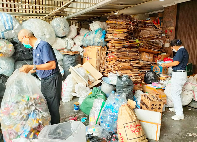 Barang-barang yang bisa di daur ulang banyak terlihat di depo, seperti botol plastik, kardus, kertas, dan berbagai barang-barang rumah tangga.