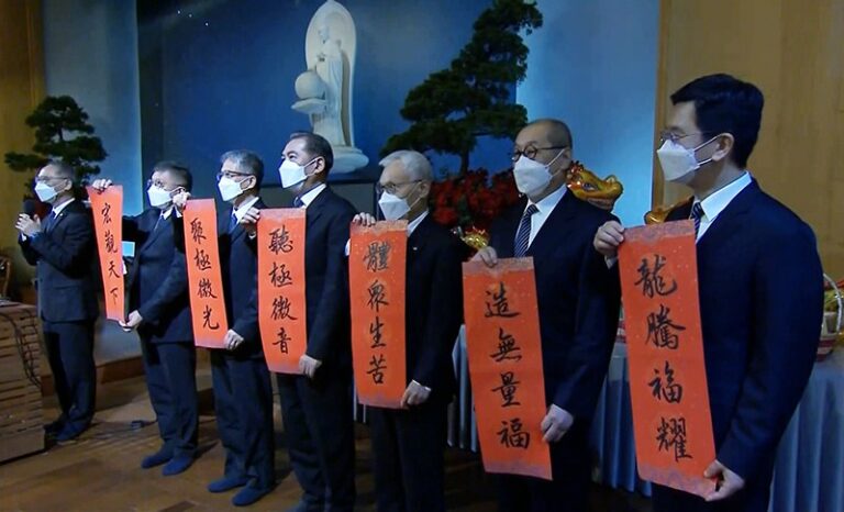 “Kami akan menabur berkah yang tak terhingga di Tahun Naga ini. Kami akan menjaga kesehatan dan melangkah dengan tekun dan bersemangat. Kami akan mengembangkan kebajikan demi membawa manfaat bagi semua makhluk dengan keyakinan, ikrar, dan praktik. Semoga Master sehat selalu, panjang umur, dipenuhi berkah tak terbatas, dan senantiasa memutar roda Dharma. Selamat Tahun Baru.”