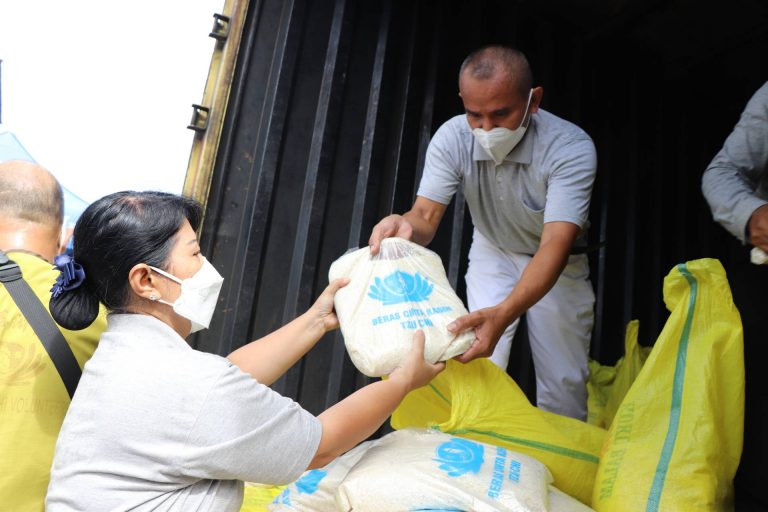Pembagian paket beras berlangsung pukul 08.00 WIB. Sebelumnya, kupon terlebih dulu dibagikan secara door to door ke rumah warga dengan menerapkan protokol kesehatan ketat. Hal ini bertujuan untuk melihat langsung kondisi penerima kupon bila ke depannya ada yang membutuhkan bantuan lanjutan.