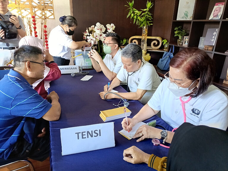 Kegiatan yang dimulai sejak pagi berlangsung dengan suasana hangat dan penuh kebersamaan. Acara diawali dengan penyuluhan kesehatan serta pemeriksaan kesehatan gratis oleh TIMA Singkawang. Sebanyak 4 dokter dan 3 perawat memberikan pelayanan dengan sepenuh hati, mulai dari pemeriksaan tekanan darah, cek darah, hingga pemberian obat sesuai kebutuhan. Layanan ini menjadi bentuk nyata perhatian terhadap kesehatan para penerima bantuan, agar mereka dapat menjalani kehidupan dengan kondisi yang lebih baik.