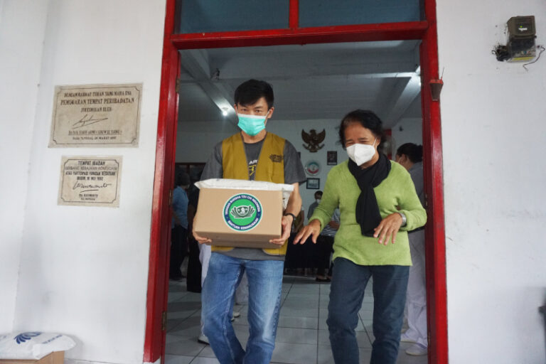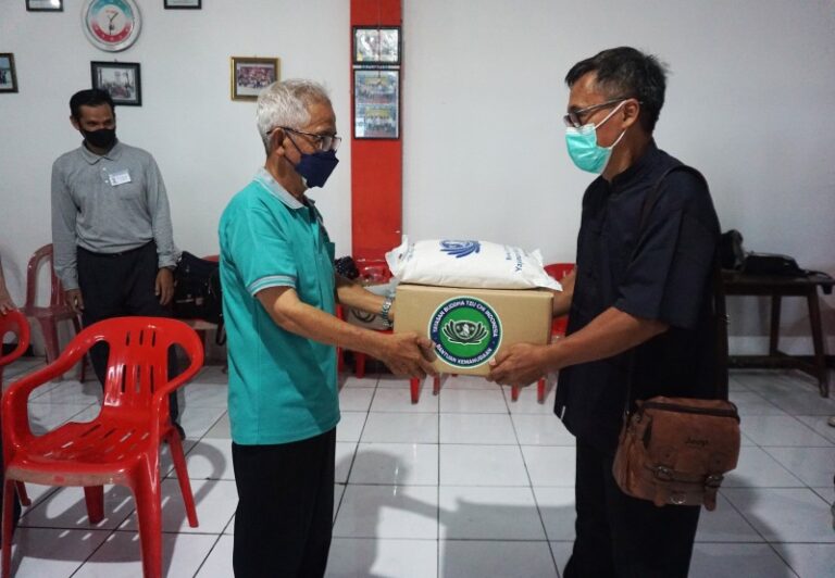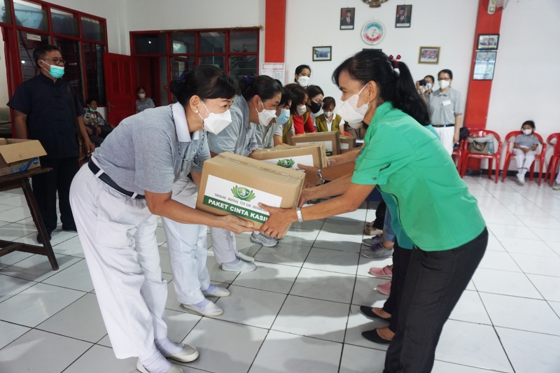 Suasana penuh sukacita sangat terasa di Makin Bogor - Lithang Gerbang Kebajikan, para umat yang wihara menerima paket sembako dari Tzu Chi.