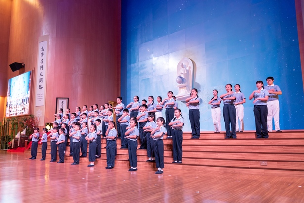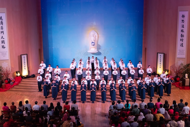 Di penghujung acara, seluruh relawan berkumpul di atas panggung, dengan suara lantang menyanyikan Menghayati hati Buddha sebenarnya adalah hati kita sendiri, menerima dan menjadikan tekad guru sebagai tekad diri kita sendiri. Berikrar demi ajaran Buddha di setiap kehidupan, setiap niat tulus demi semua makhluk.”