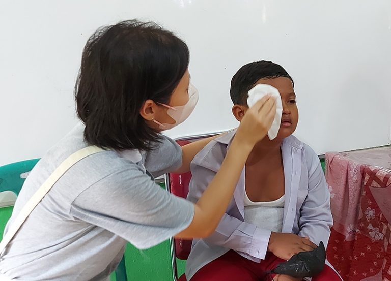 “Ayo Okha, gak boleh takut, supaya sehat, nanti habis disuntik dikasih kue dan susu loh sama ibu. Yuk kita suntik yuk, pegang tangan ibu kalau takut ya,” bujuk Lidya Pane, salah satu Relawan Dharma Wanita Tzu Chi Cabang Sinar Mas Xie Li Kampar, kepada Okha. Tetapi Okha tetap tidak terbujuk. Pada akhirnya orang tua keduanya bekerja sama dengan Relawan Dharma Wanita Tzu Chi Cabang Sinar Mas Xie Li Kampar berusaha memegangi Okha dan Aysel untuk disuntik. Walaupun sedikit memberontak tapi keduanya berhasil disuntik.
