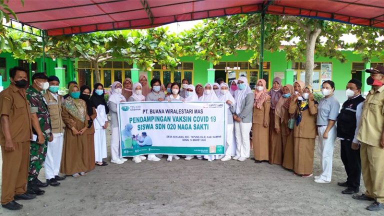 Kadir, Kepala Sekolah SDN 020 Naga Sakti, mengucapkan terima kasih dan apresiasinya atas bantuan Relawan Dharma Wanita Tzu Chi Cabang Sinar Mas Xie Li Kampar dalam mendampingi siswa-siswi, mengingat banyaknya siswa di sekolah tersebut. “Bantuan pendampingan dari ibu-ibu Relawan Dharma Wanita Tzu Chi Cabang Sinar Mas Xie Li Kampar tentu dapat meringankan tugas dari para guru. Terutama untuk anak-anak kami yang masih kecil, yang banyak takut sama jarum suntik,” tutur Kadir.